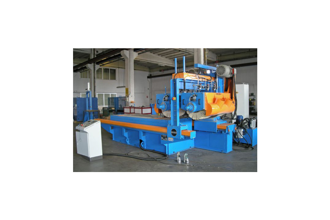 Macchine adatte alla spazzolatura e lucidatura di particolari piani (come lamiere, profilati, placche, targhe e cornici), per ottenere finiture di altissima qualità. L’impiego di tale macchina si rende opportuno laddove la dimensione dei pezzi o particolari esigenze di ciclo rendono inadatto l’uso delle tradizionali macchine per finitura in piano.