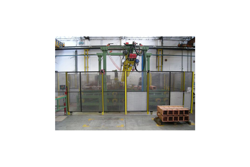 La corsa trasversale avviene con motoriduttore con trasmissione tramite vite a ricircolo di sfere e velocità regolabile da inverter. La posizione di entrambe le slitte è controllata da PLC tramite encoder di posizione.